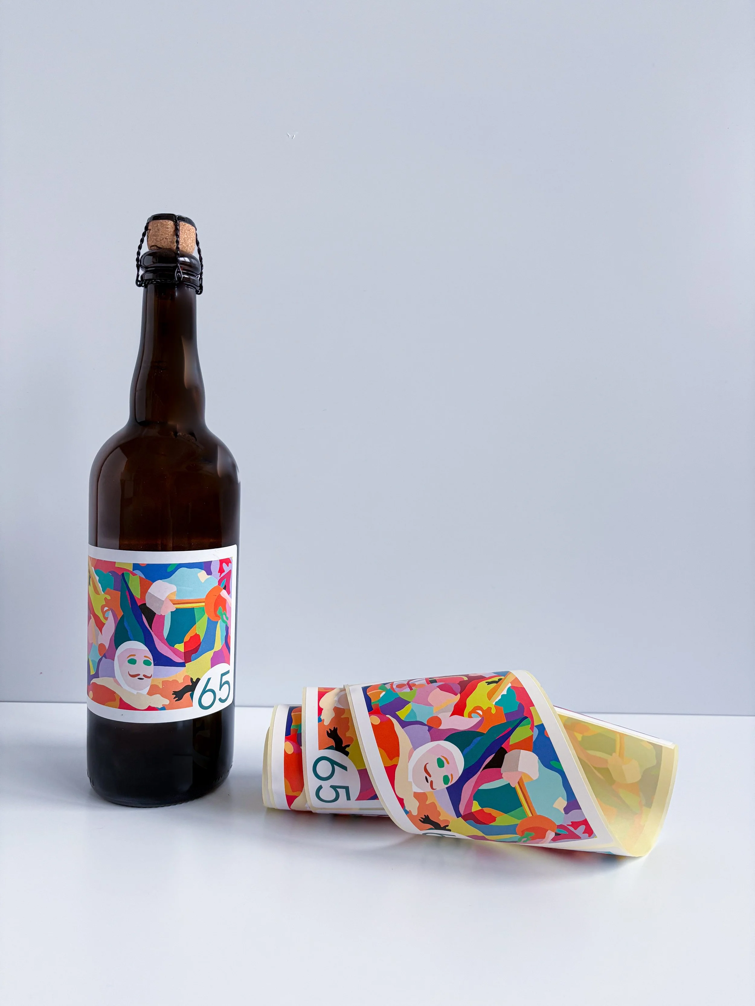Vous pouvez vous procurer Les bouteilles de bière « 65 » … mais de 75 cl au prix de 8 €/pièce :